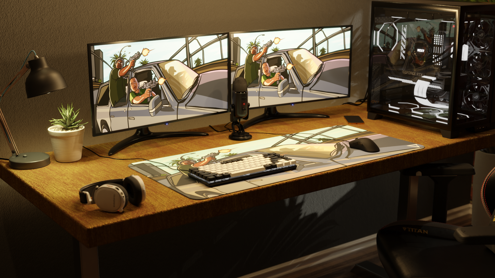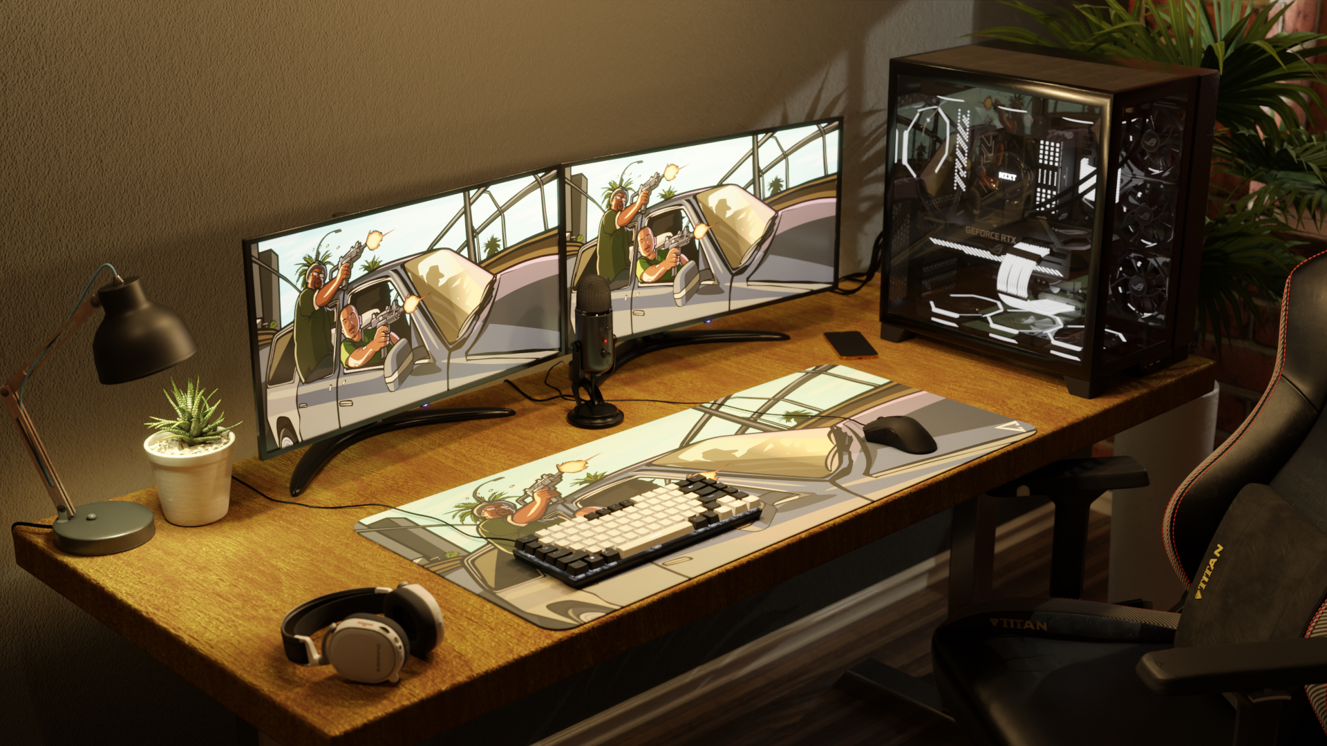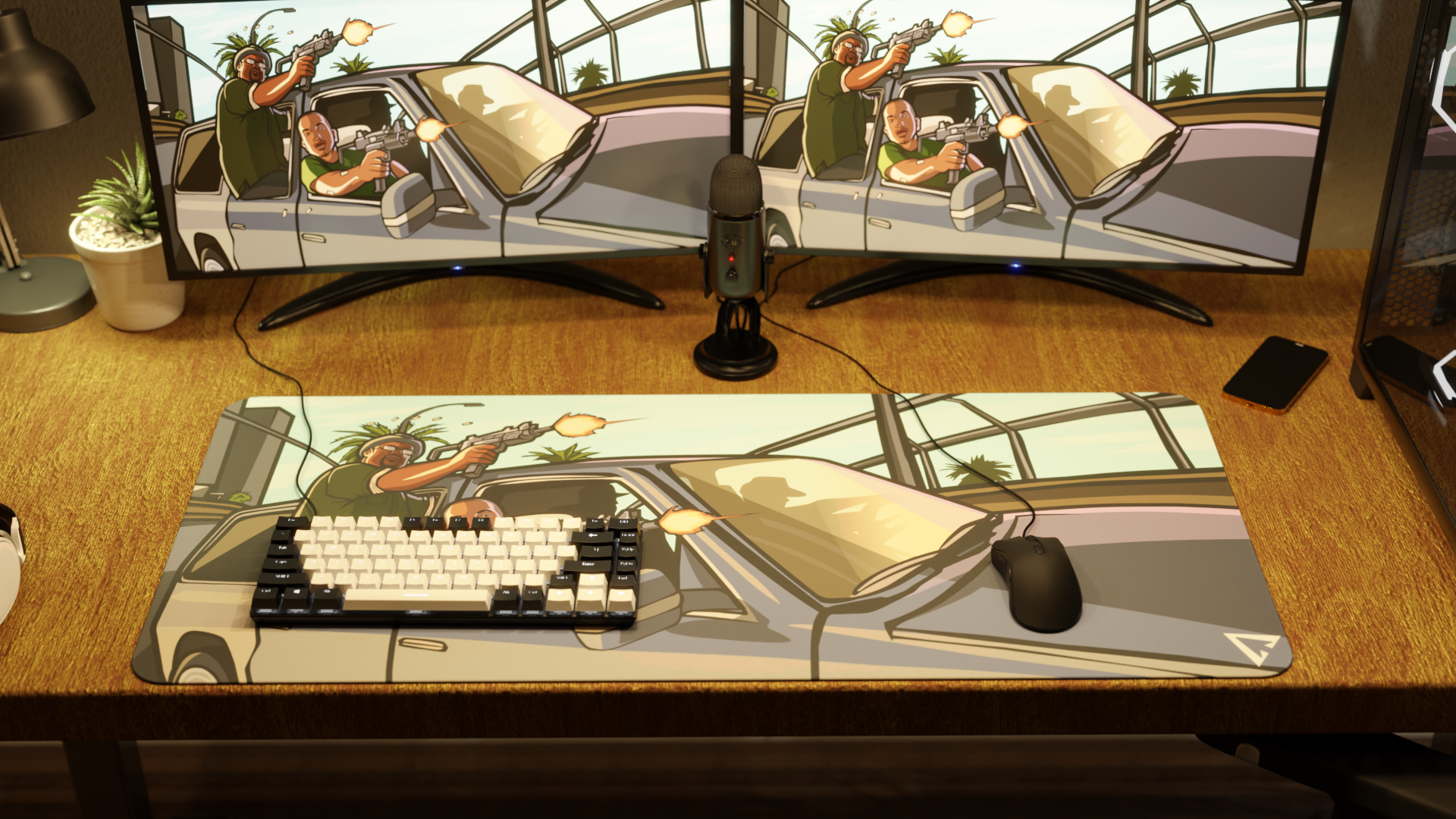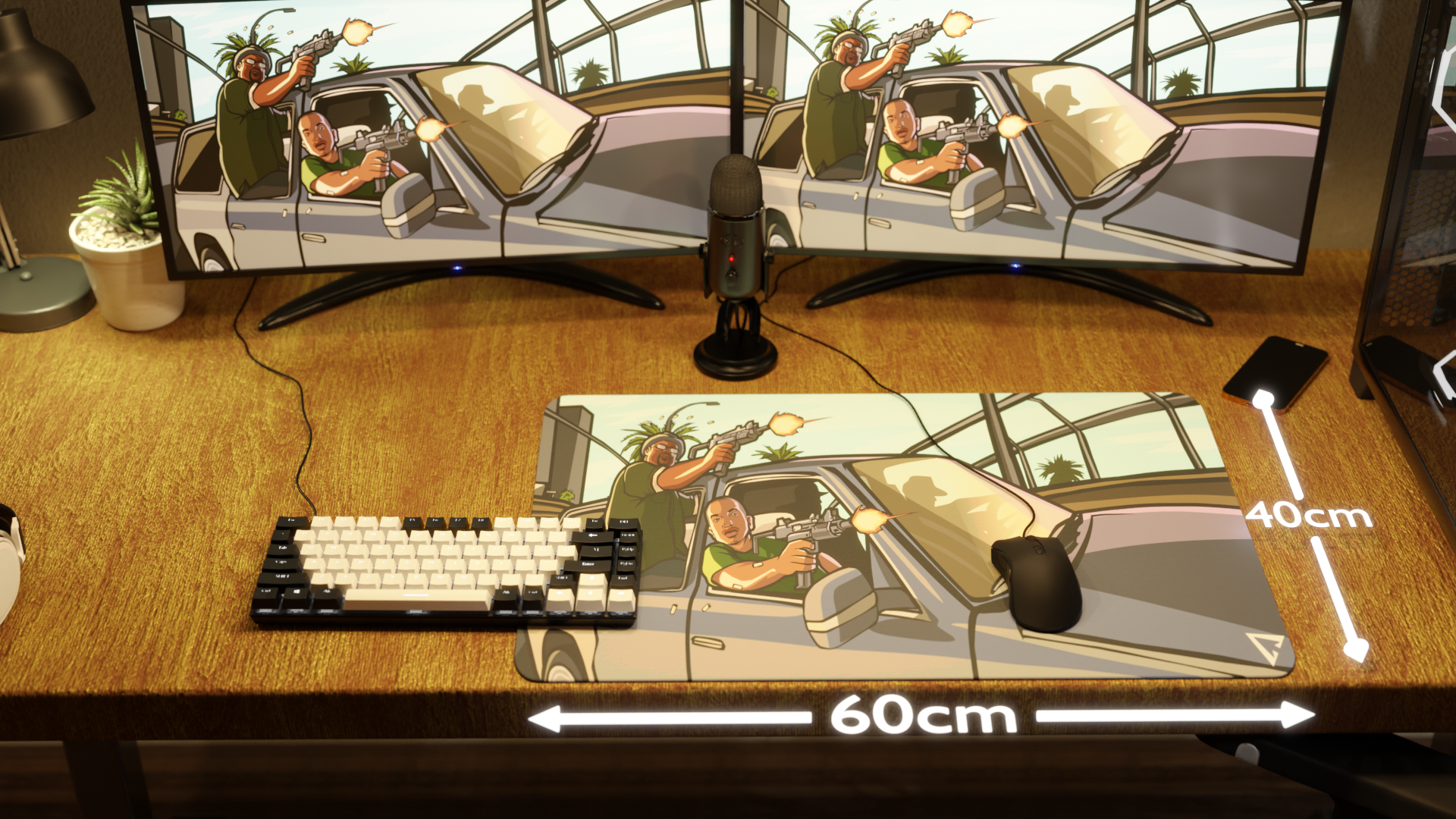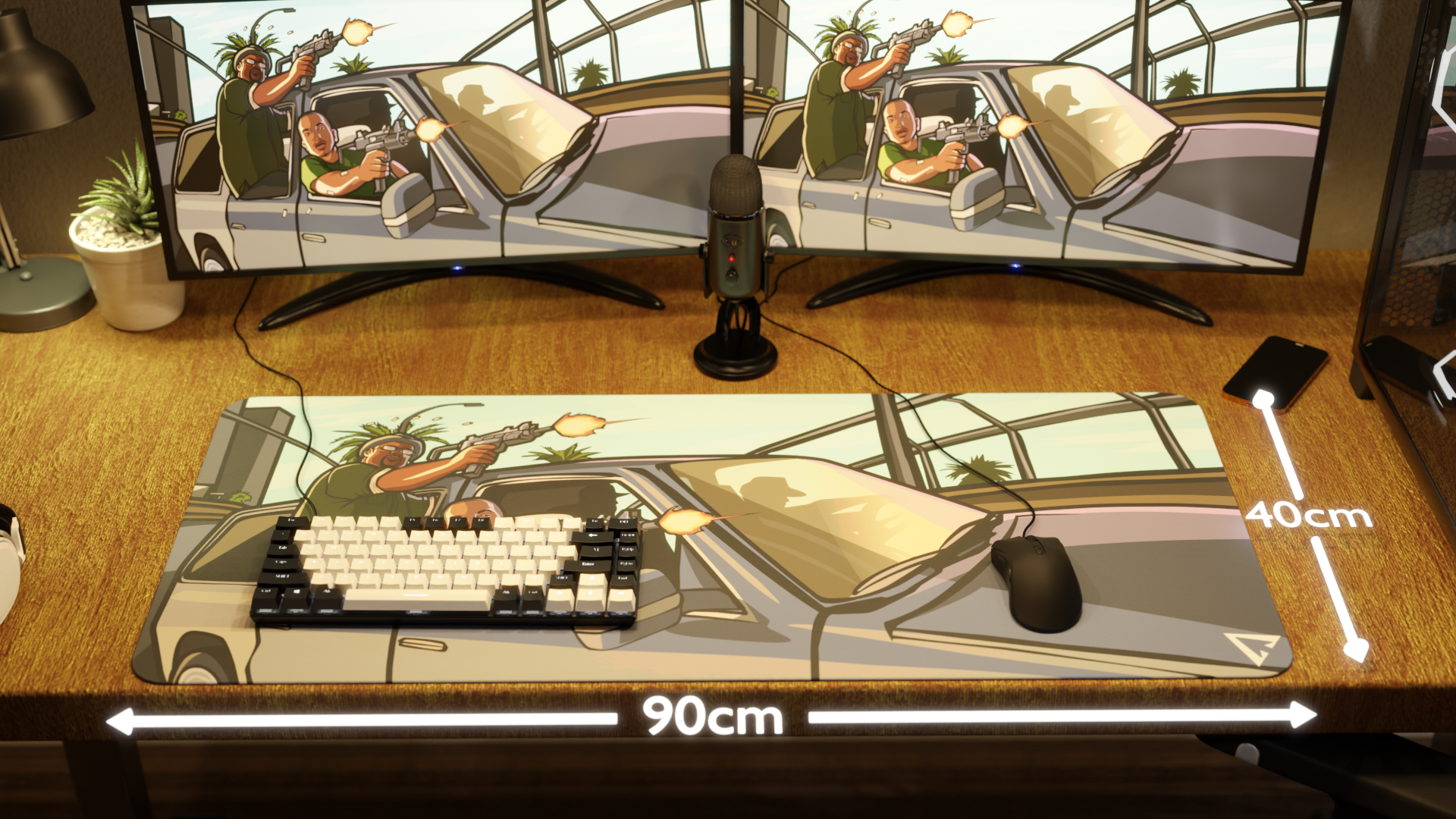 The mousepad features a classic car, with none other than CJ and Big Smoke from GTA San Andreas leaning out the side window, aiming their weapons, bringing the iconic streets of Los Santos straight to your desk.